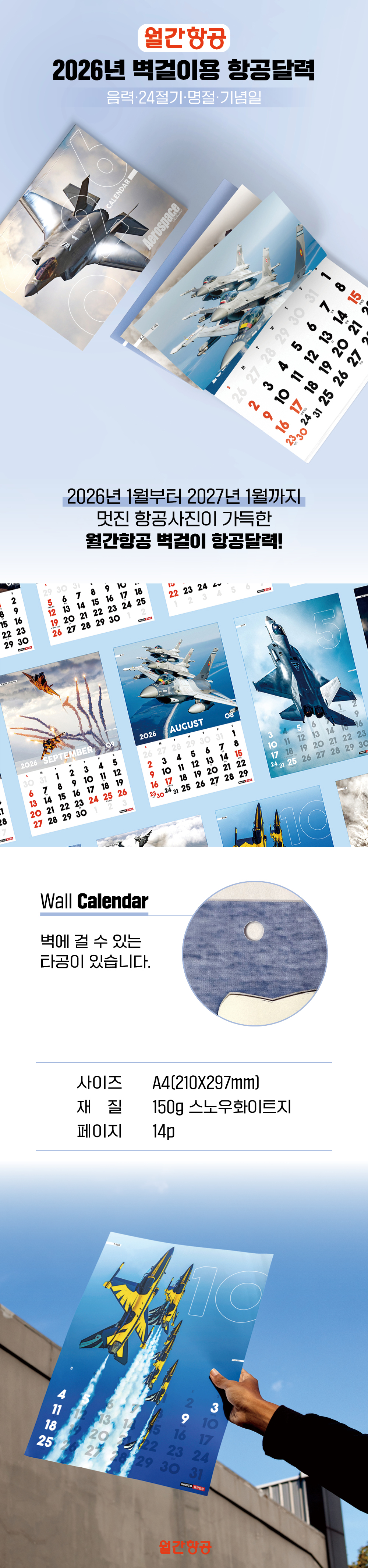품명 : 월간항공 2026년 고급 벽걸이용 항공달력